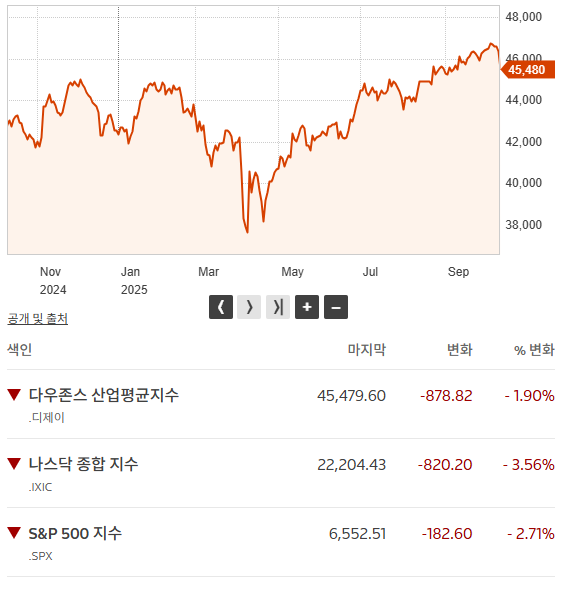 기술주 중심의 나스닥 지수는 3.6% 급락하며